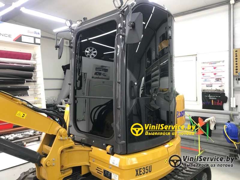 Тонировка мини экскаватора 5% плёнкой UltraVision (США).